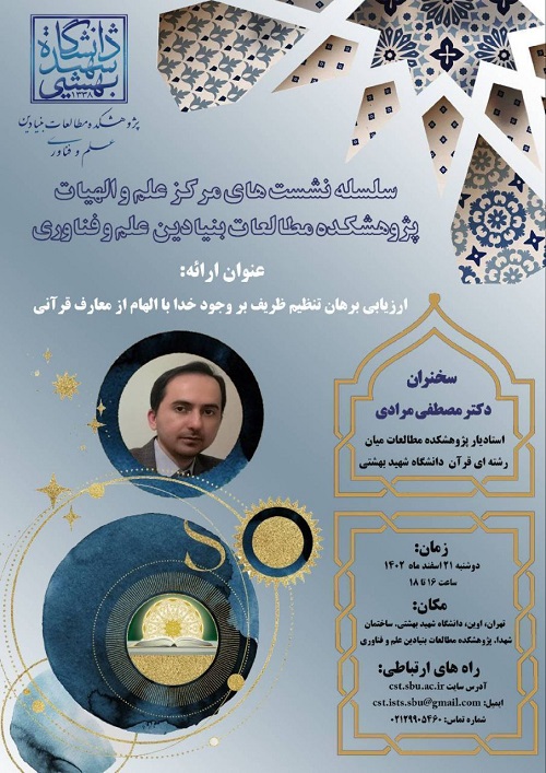 این نشست از سلسله سخنرانی‌های علم و الهیات است که به همت مرکز"علم و الهیات" پژوهشکده مطالعات بنيادين علم و فناوری دانشگاه شهیدبهشتی برگزار می‌شود.